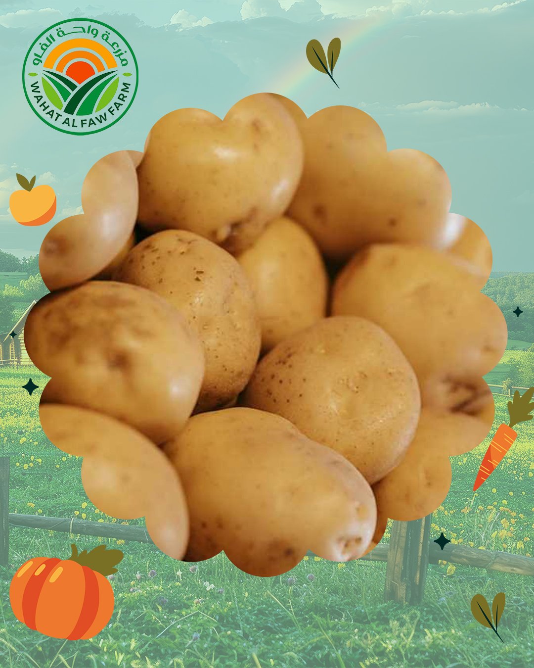 بطاطس طبيعية طازجة من إنتاج مزرعة واحة الفاو، ذات قشرة ذهبية ولب متماسك، مثالية لجميع أنواع الطهي مثل القلي، السلق، والفرن. خالية من المواد الكيميائية، وتزرع في تربة نظيفة لضمان جودة عالية وطعم أصيل، كما تحتوي على نسبة ممتازة من النشويات التي تمنحك الطاقة