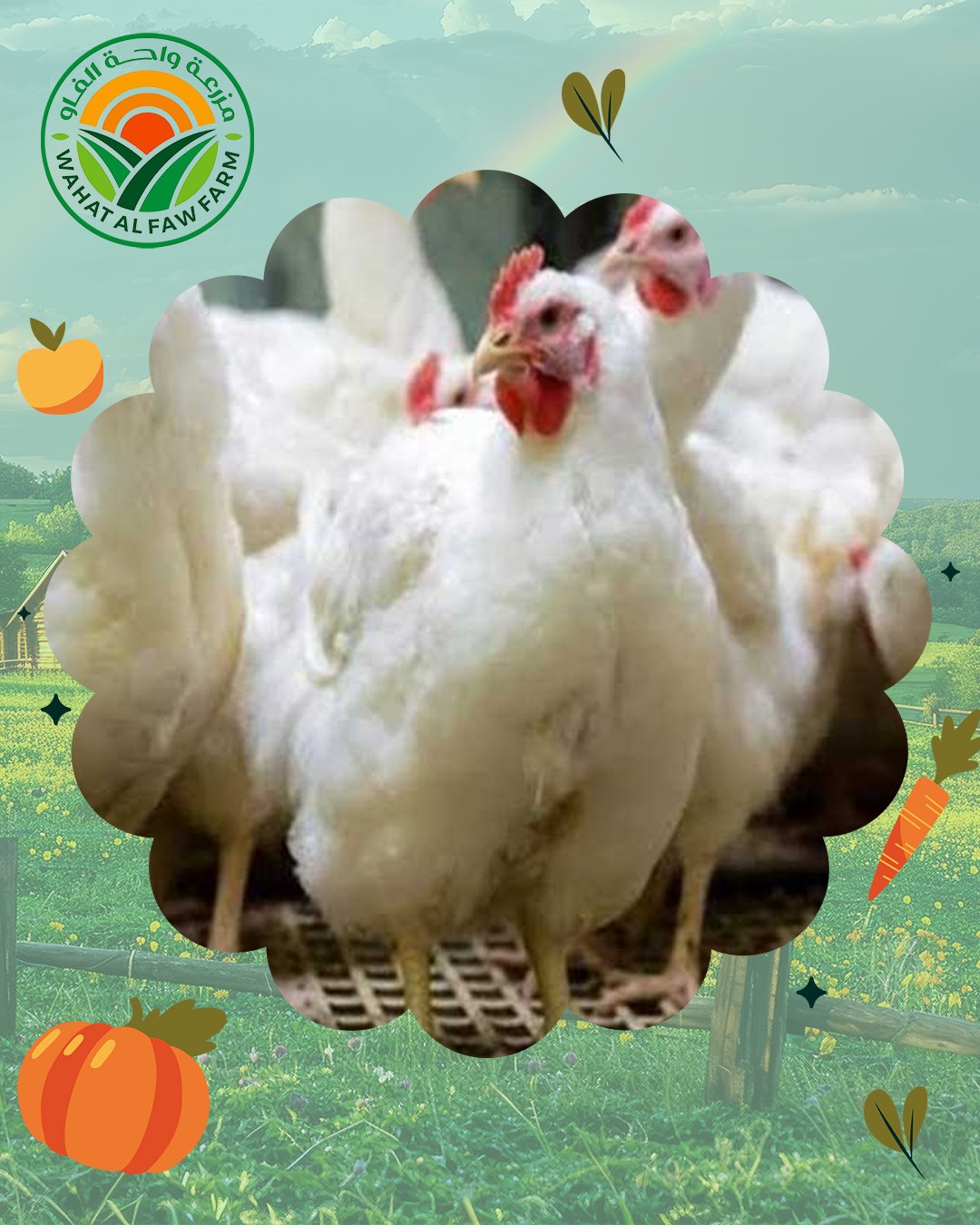 دجاج طازج من مزرعة واحة الفاو – لحم نظيف وجودة مضمونة